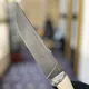 - Нож Зла, выполненный из рога буйвола, дамасской стали и бивня мамонта, отличается мощью и загадочностью, а его украшение – резным шпинелью в огранке кабошон – добавляет образу драматизма.